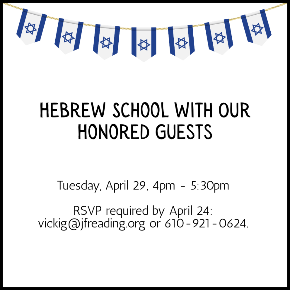 The Jewish Federation of Reading/Berks invites Hebrew school students in grades 3 through 7 from throughout Berks County to join together for a special program!