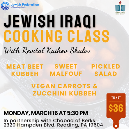 Revital will teach us how to make traditional Jewish Iraqi food: meat beet Kubbeh, vegan varrots & zucchini Kubbeh, pickled salad, and sweet malfouf.