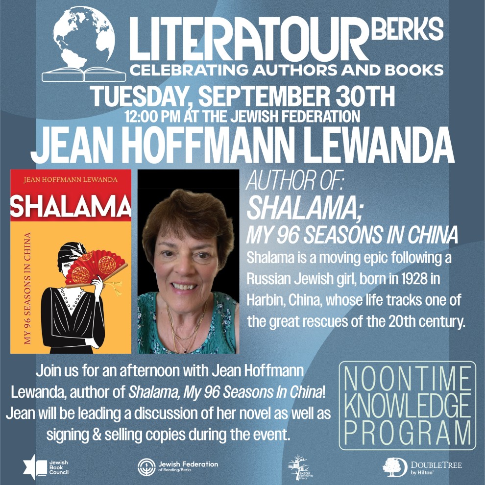We welcome Jewish Book Council author, Jean Lewanda, who will be spekaing about her book, Shalama: My 96 Seasons in China