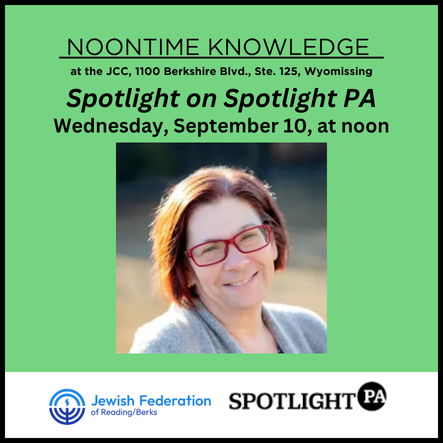 Noontime Knowledge is a free program, held twice monthly, provided by the Jewish Federation of Reading/Berks to educate our community on a variety of topics.