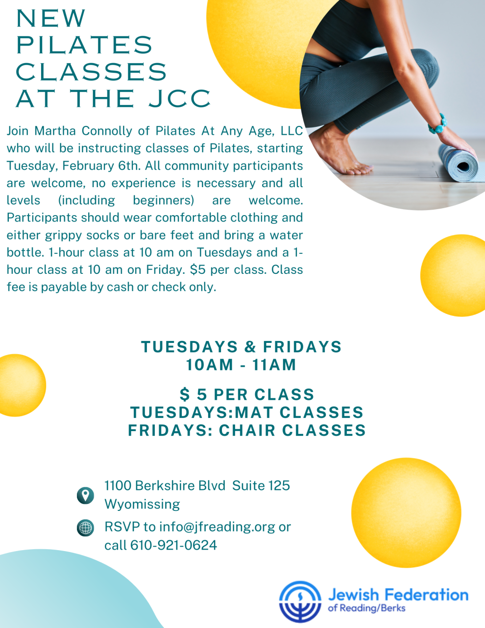 All community participants are welcome, no experience is necessary and all levels (including beginners) are welcome. Participants should wear comfortable clothing and either grippy socks or bare feet and bring a water bottle. 1-hour class at 10 am on Tuesdays and a 1-hour class at 10 am on Friday. $5 per class.Class fee is payable by cash or check only.