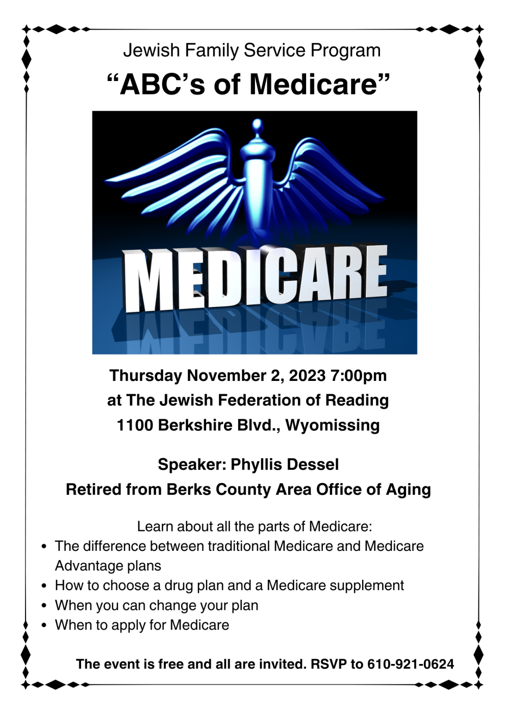 Learn about all the parts of medicare: the difference between traditional Medicare and Medicare advantage plans , how to choose a drug plan and a Medicare supplement, when you can change your plan and when to apply with Phyllis Dessel Retired from the Berks County Area Office of Aging.