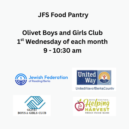 For more information or questions call Carole or Sari at the Jewish Federation of Reading 610-921-0624