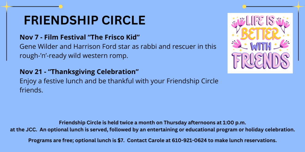 Enjoy a festive lunch and be thankful with your Friendship Circle friends.