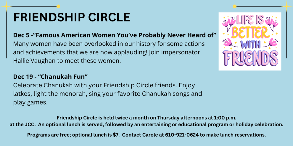 Celebrate Chanukah with your Friendship Circle friends. Enjoy latkes, light the menorah, sing your favorite Chanukah songs and play games.