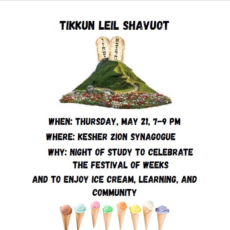 Night of Study to celebrate the festival of weeks and to enjoy ice cream, learning, and community