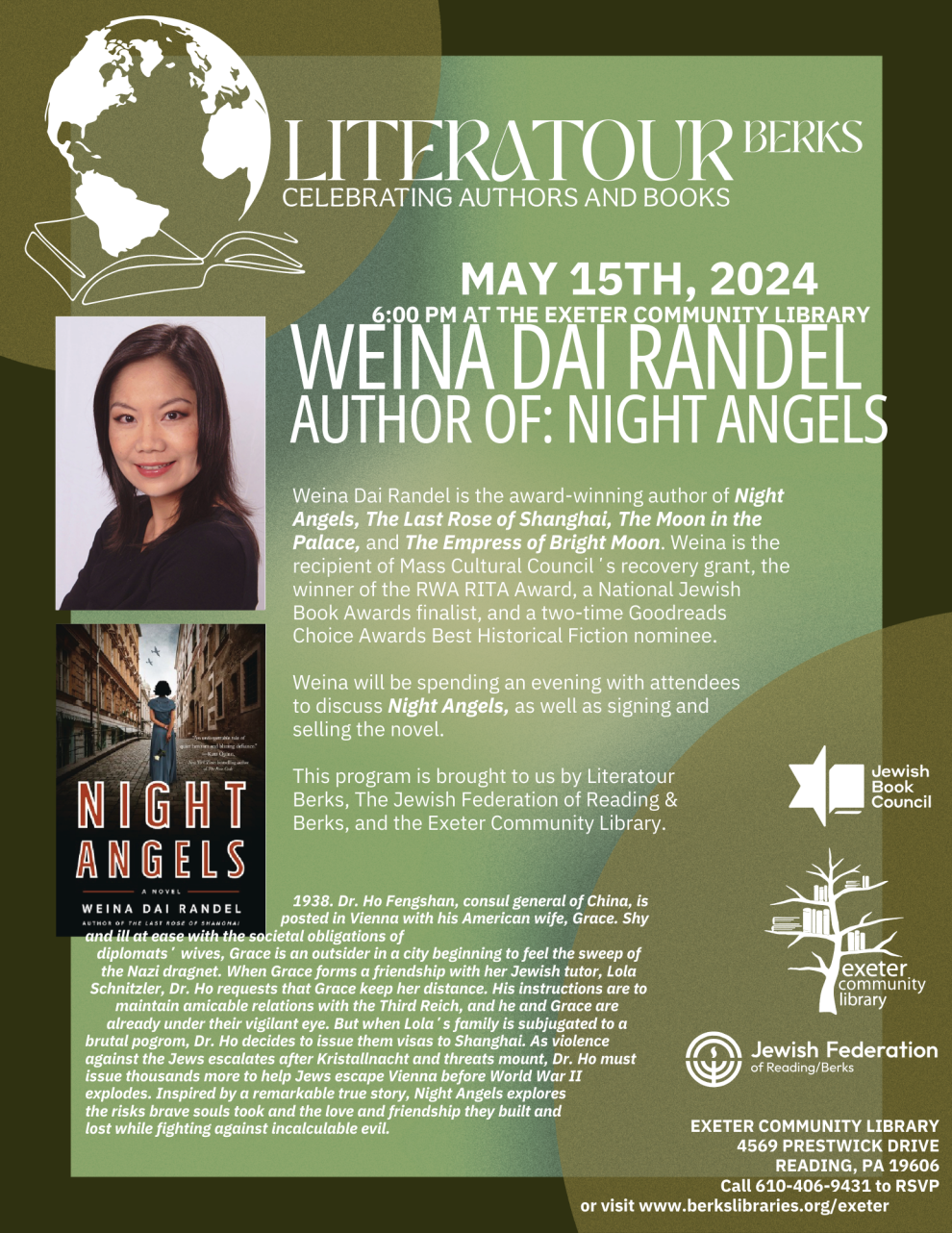 Weina Dai Randel author of Night Angels will be spending the evening discussing Night Angels as well as signing an selling the novel.