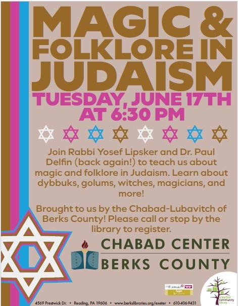 Join Rabbi Yosef Lipsker and Dr. Paul Delfin to teach us about magic and folklore in Judaism. Learn about dybbuks, golums, witches, magicians and more!