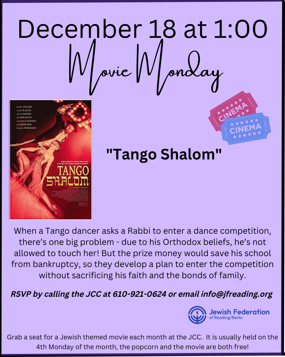 Tango Shalom -When a Tango dancer aska Rabbi to enter a dance competition, there's one big problem- due to his Orthodox beliefs , he's not allowed to touch her! But the prize money would save his school from bankruptcy, so they develop a plan to enter the competition without sacrificing his faith and the bonds of family.