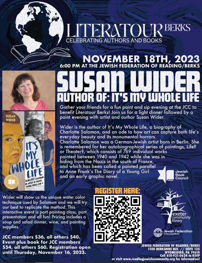 with artist and author Susan Wider. We will learn water color techniques used by German-Jewish artist Charlotte Salomon.