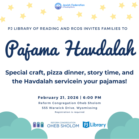 ALL Reading/Berks families are invited to a special Havdalah at RCOS with Rabbi Michelson and Cantor Stuart Binder.