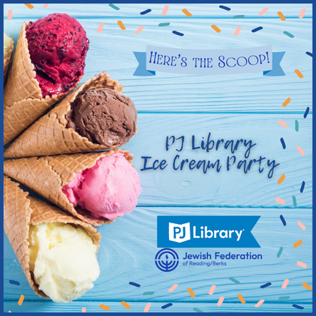 This summer, PJ Library of the Jewish Federation of Reading/Berks is hosting free ice cream parties! Come enjoy ice cream and see friends new and old. Meet Vicki Graff, the Program Director and PJ Library Coordinator for Reading/Berks. This June date is the first of two - one in West Reading and one in Oley!