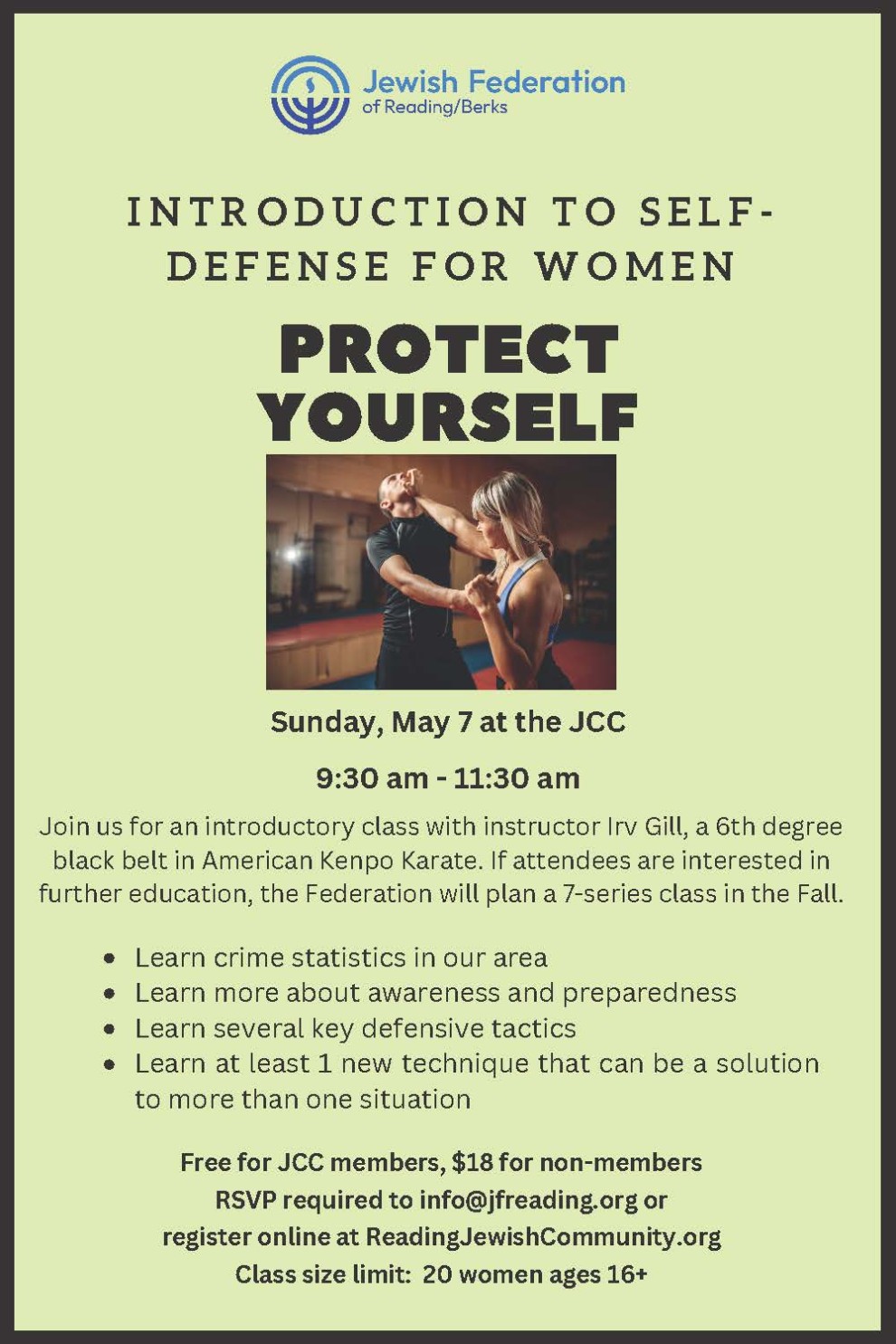 on Sunday, May 7th to learn more about self defense for women. If attendees are interested