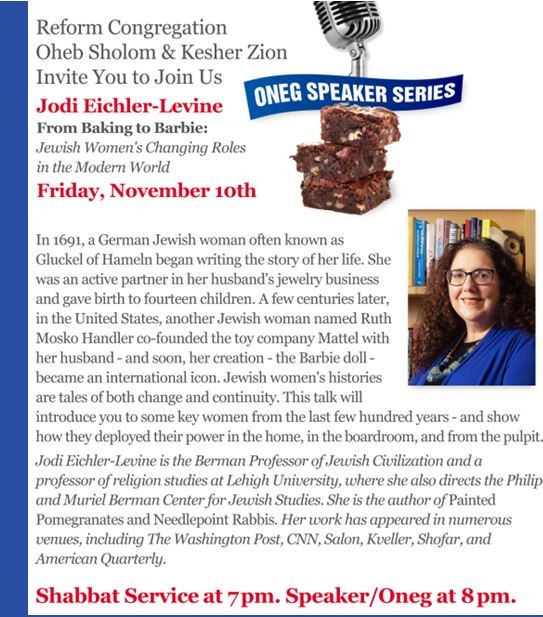 Service at 7:00 Speaker/ Oneg 8:00pm