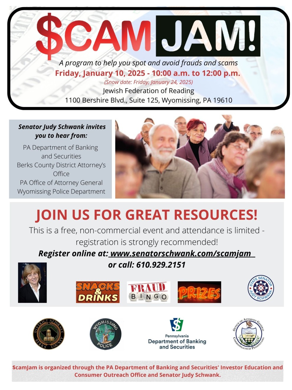 Register online at www.senatorschwank.com/scamjam or call 610-929-2151
