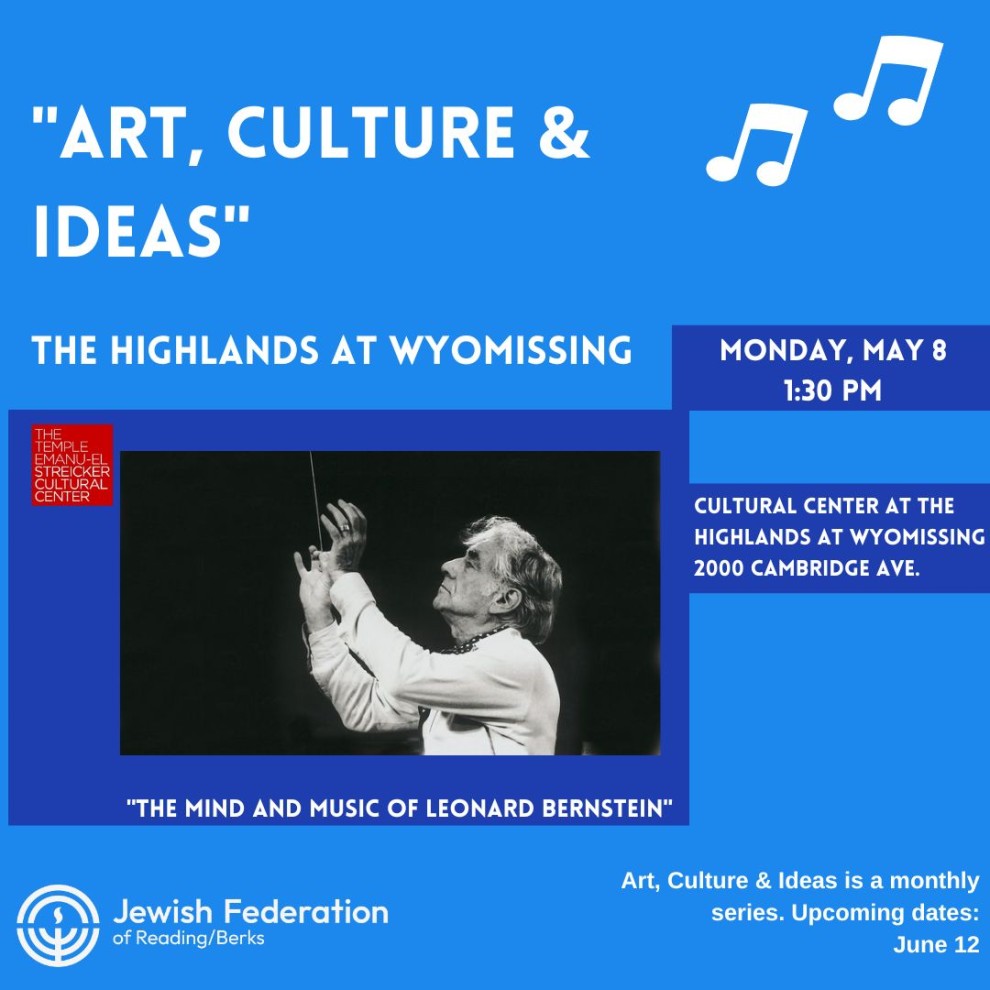 The topic for Art, Culture and Ideas is "The Mind and Music of Leonard Bernstein" with Dr. Richard Kogan.