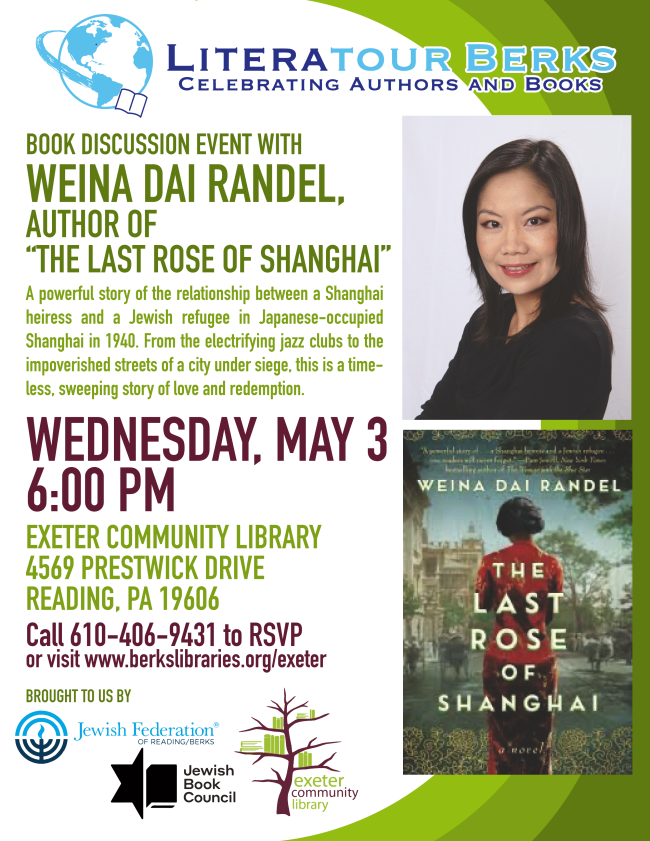 Literatour Berks Presents Weina Dai Randel "THE LAST ROSE OF SHANGHAI" Wednesday, May 3 at 6:00 p.m.