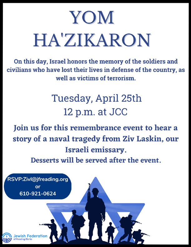 Yom Hazikaron Event (Israeli Day of Remembrance for Fallen Soldiers) Tuesday, April 25 12 p.m. at JCC