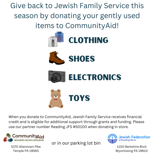 Jewish Family Service of the Jewish Federation of Reading was established in 1979 to respond to the needs of a large elderly population in need of services. The agency now serves all age groups and is dedicated to maintaining and strengthening the quality of individual and family life in the Jewish community.