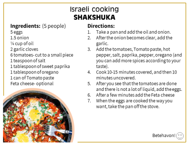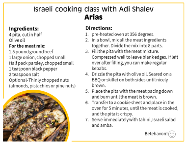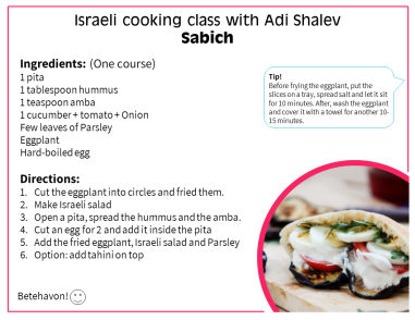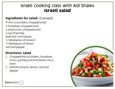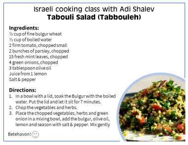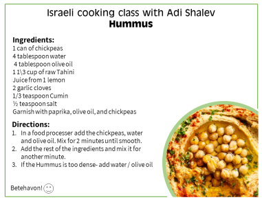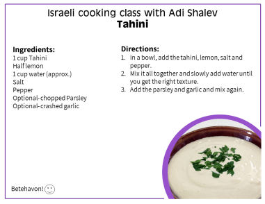 Israeli cooking class with Adi- Shakshuka, Tahini, and Israeli salad
